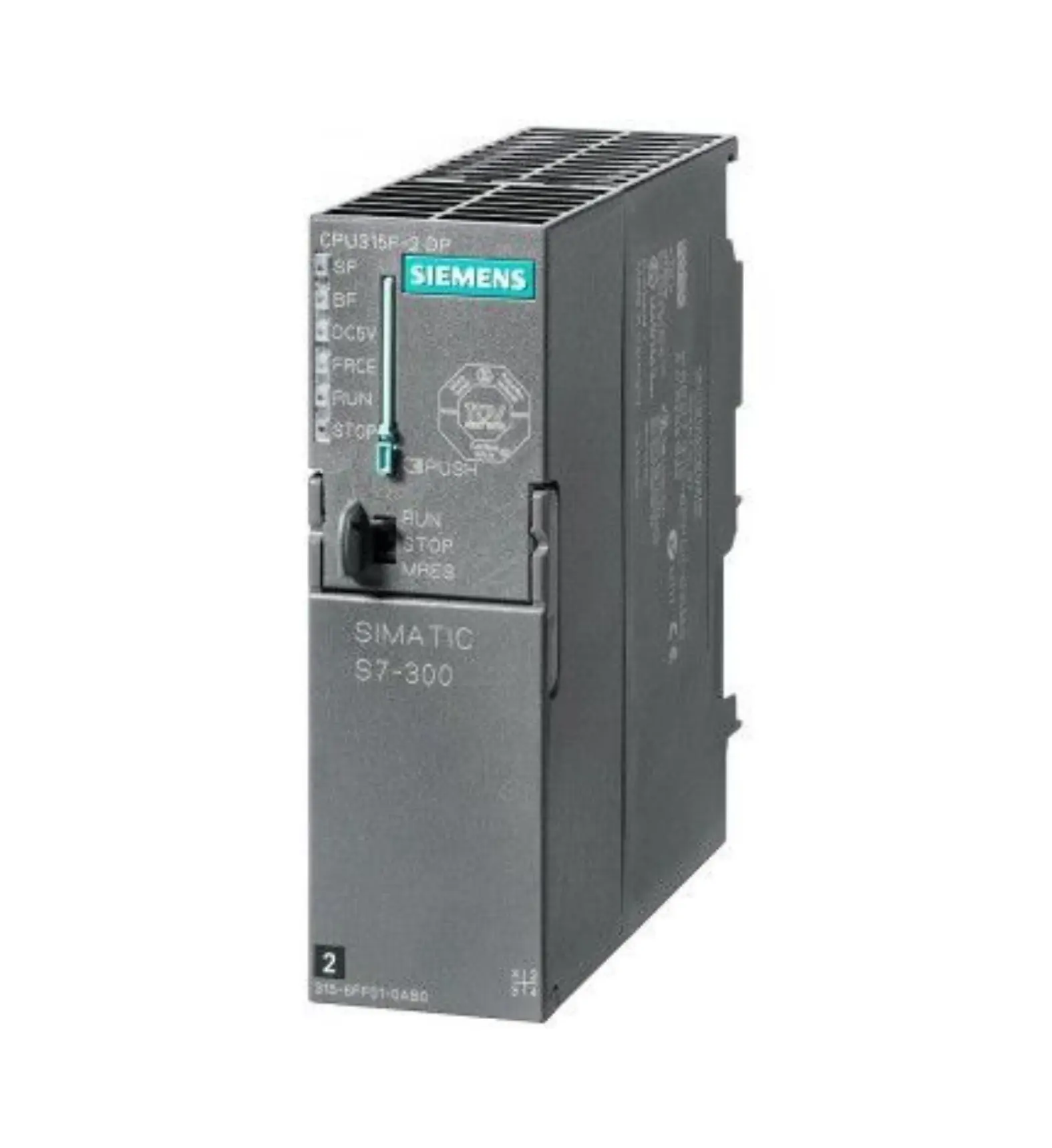 Fail-safe processor module from the SIMATIC S7-300 series, designed for safety-critical automation tasks. It features an integrated 24 V DC power supply, 384 KB of work memory, and a 40 mm width. The module includes two communication interfaces: MPI (Multi-Point Interface) and PROFIBUS DP master/slave. A Micro Memory Card is required for operation. This module complies with RoHS directives and is suitable for applications requiring high safety standards.